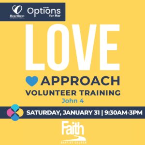 With new challenges like protecting abortion access in sanctuary states like ours poses grave risks to vulnerable women. NOW is the most important time to stand up for LIFE! If you desire to be a part of the presence we hope to have within the lives of those we meet, we’d love to see you at our ONE-DAY volunteer training class, “The Love Approach,” on Saturday, January 31, 2026 from 9:30AM – 3:00PM at Faith Baptist Church, Hamilton, NJ.